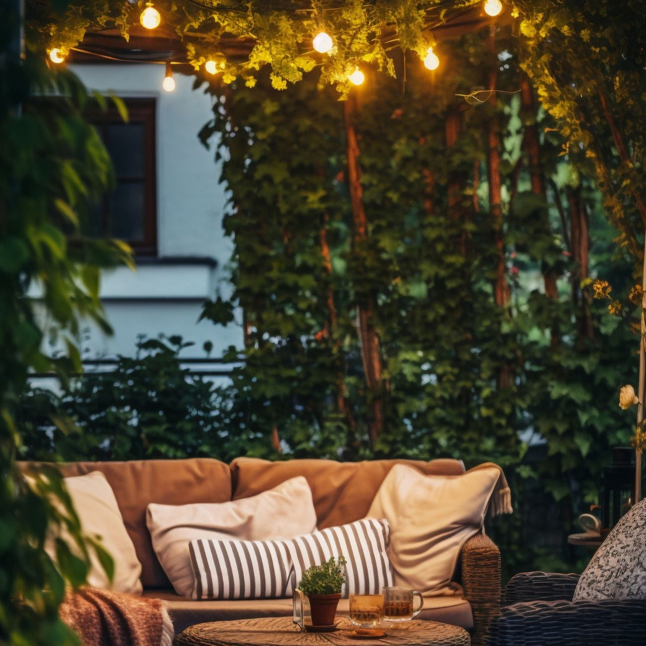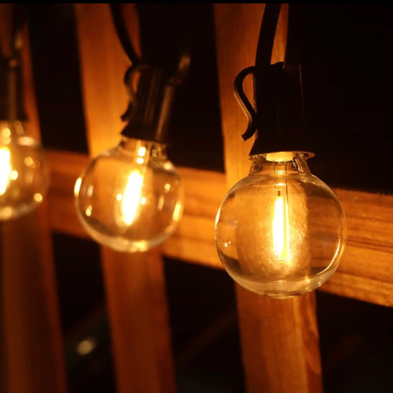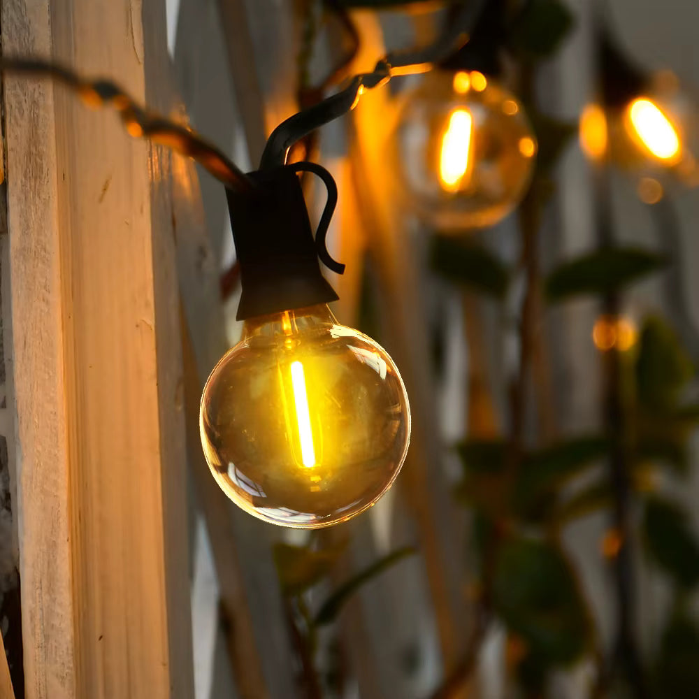 Guirnalda de exterior LED estilo vintage de filamento a la vista, ideal para iluminar y decorar jardines, terrazas, patios y eventos al aire libre con un estilo cálido y acogedor.