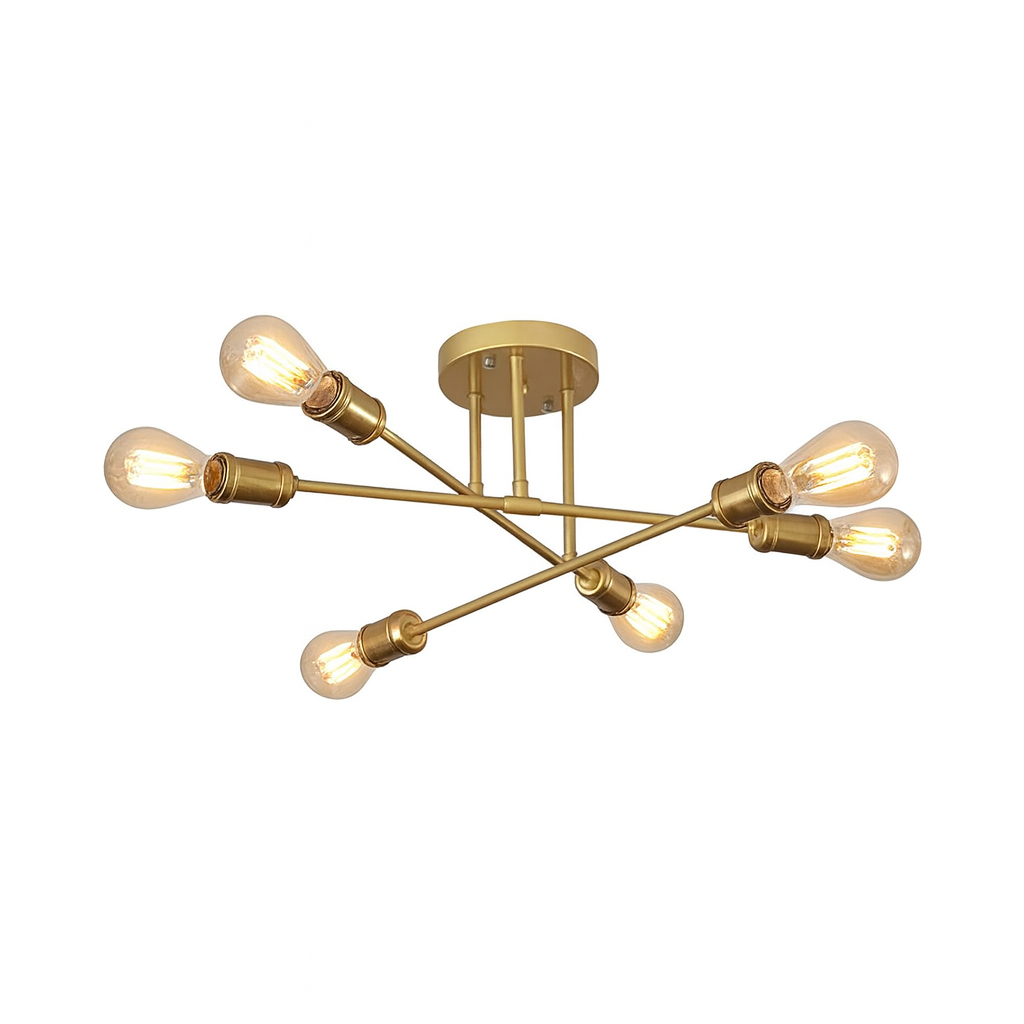 Dale un toque sofisticado y moderno a tus espacios con el plafón de techo Sputnik Francisca. Su diseño de 6 luces en forma radial y acabado dorado (gold) lo convierten en una pieza decorativa impactante, ideal para comedores, livings o dormitorios con estilo contemporáneo o vintage.